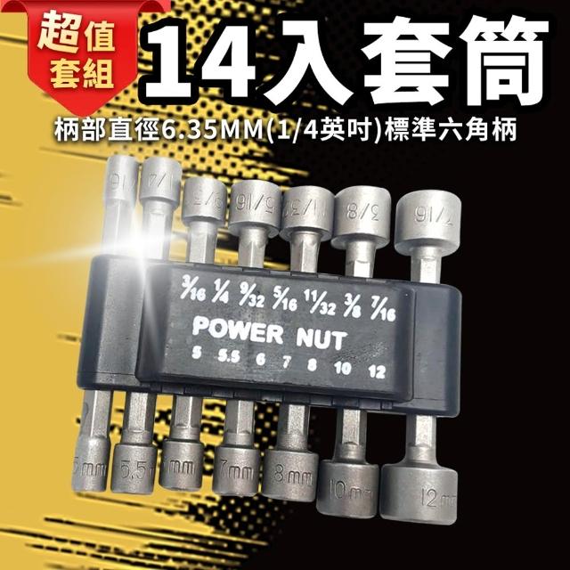 🏆冠軍嚴選🏆超值14入無磁套筒 台灣現貨 工具 六角套筒 6角套筒 套筒扳手 適用於電動起子機 手動套筒 內六角套筒