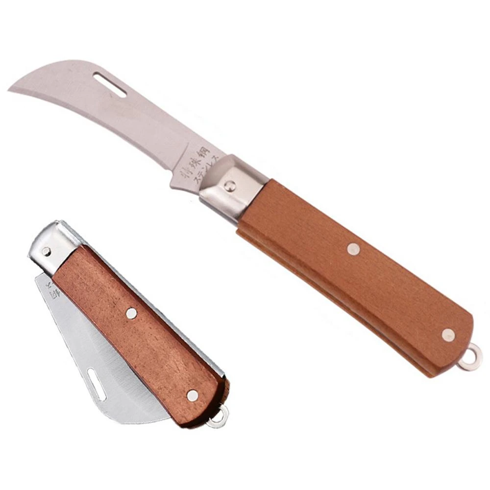 🏆冠軍嚴選🏆木柄電工刀 可折疊 特殊鋼 直刀 彎刀 折疊式 剝線刀 萬能刀 摺疊刀 嫁接刀 剝電線 彎口 剝皮刀 水電刀 電工刀