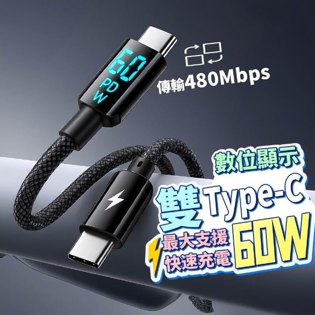 60W 雙type-c編織充電線 數顯 充電線快充線 PD快充線 type c 🏆冠軍嚴選🏆