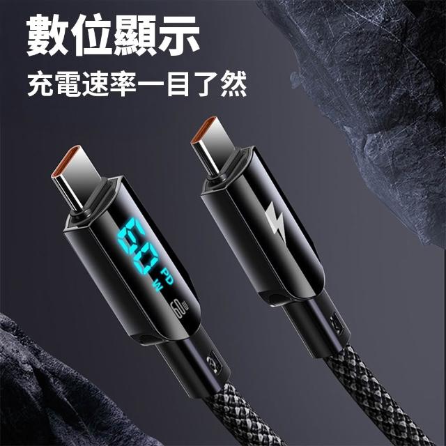 60W 雙type-c編織充電線 數顯 充電線快充線 PD快充線 type c 🏆冠軍嚴選🏆
