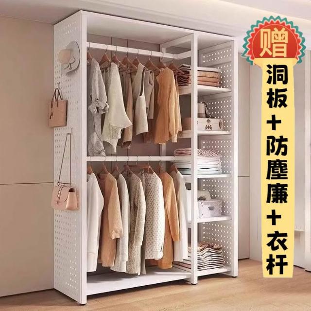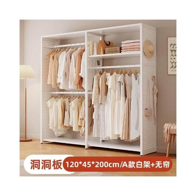 洞洞板金屬衣櫃 洞洞板 帶簾 衣櫃 衣櫥 衣帽架 掛衣架 收納架 衣架
