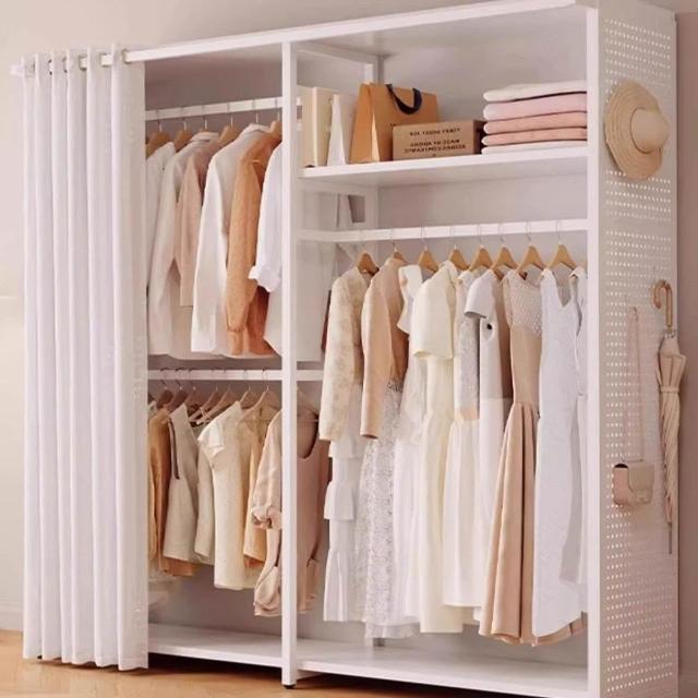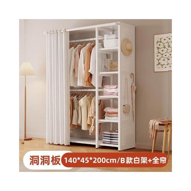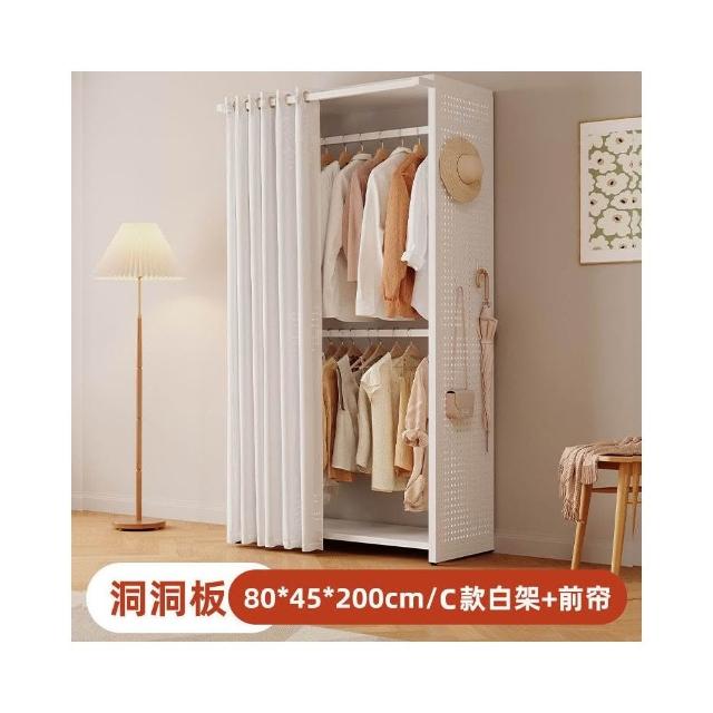 洞洞板金屬衣櫃 洞洞板 帶簾 衣櫃 衣櫥 衣帽架 掛衣架 收納架 衣架
