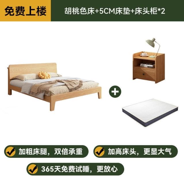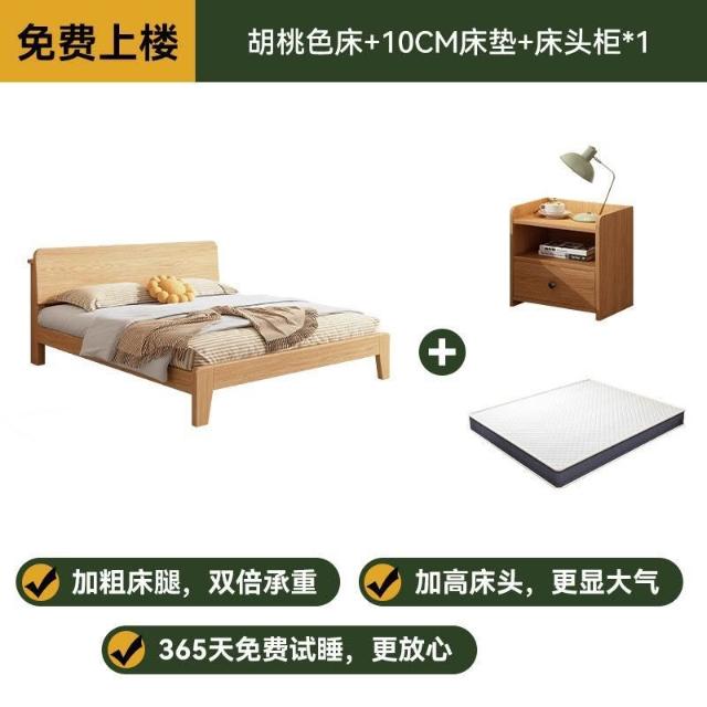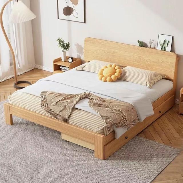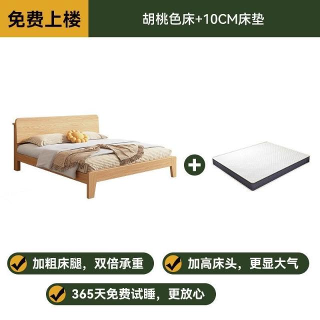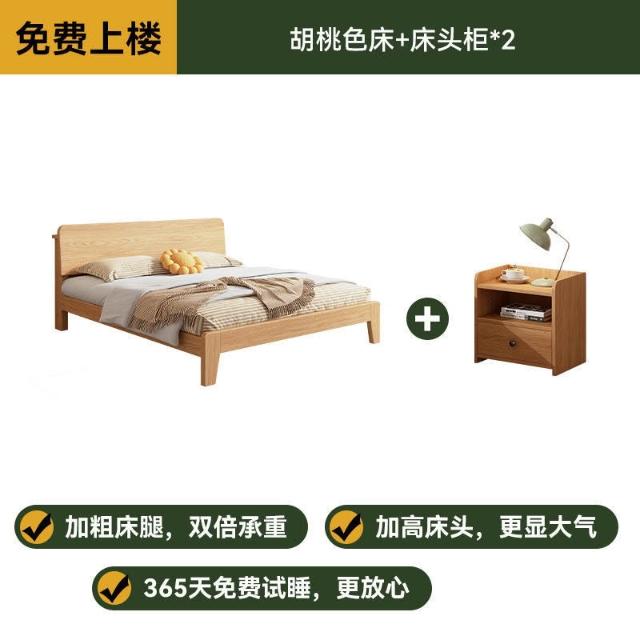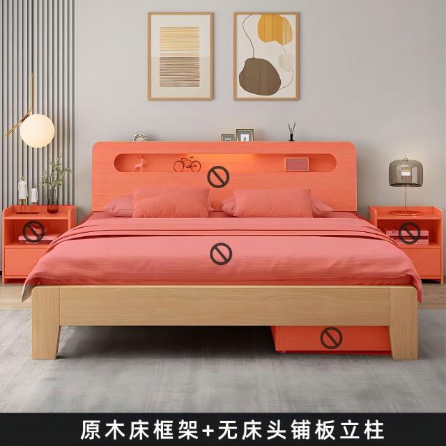 簡約實木床現代1.8米雙人床臥室出租房用小戶型1.2m1.5單人床床架