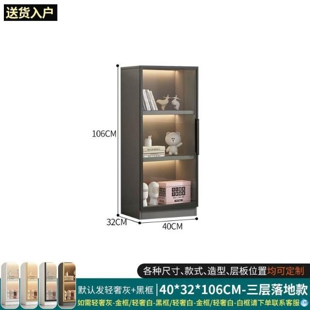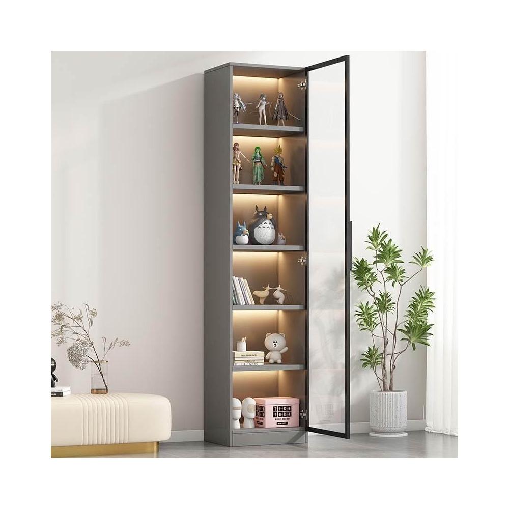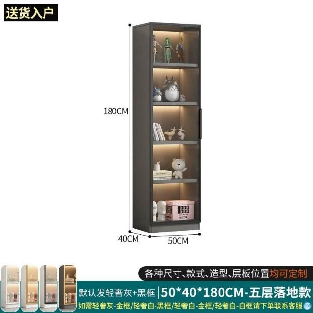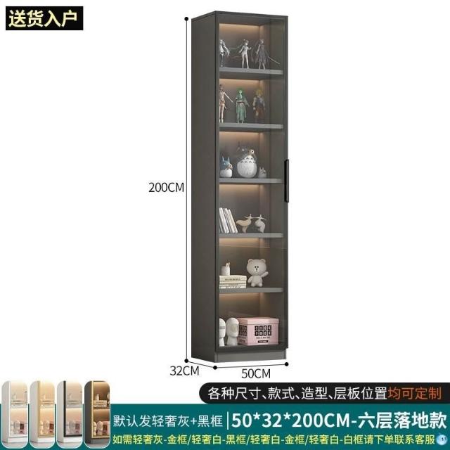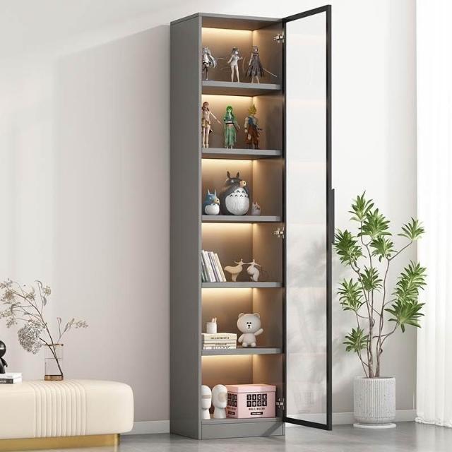 書櫃展示櫃家用客廳可移動落地一體組合置物酒櫃窄邊透明玻璃門