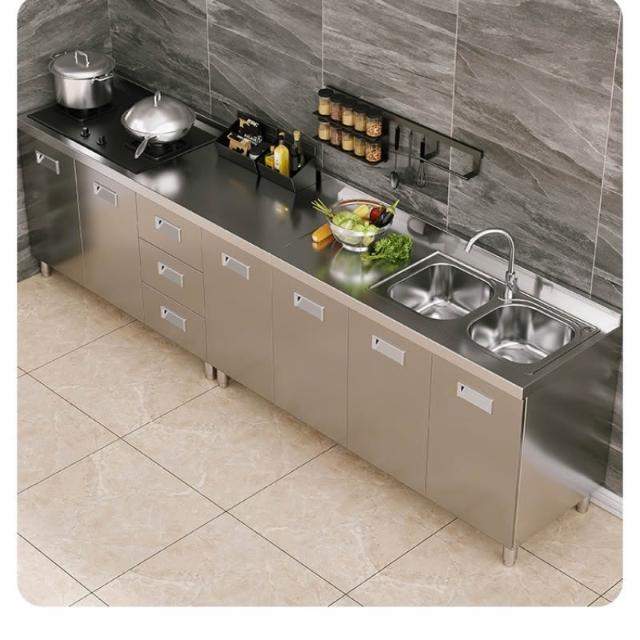 304整體不銹鋼廚房櫥櫃家庭簡易灶台一體家用經濟型農村儲物碗櫃