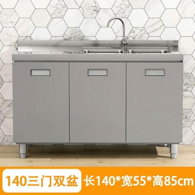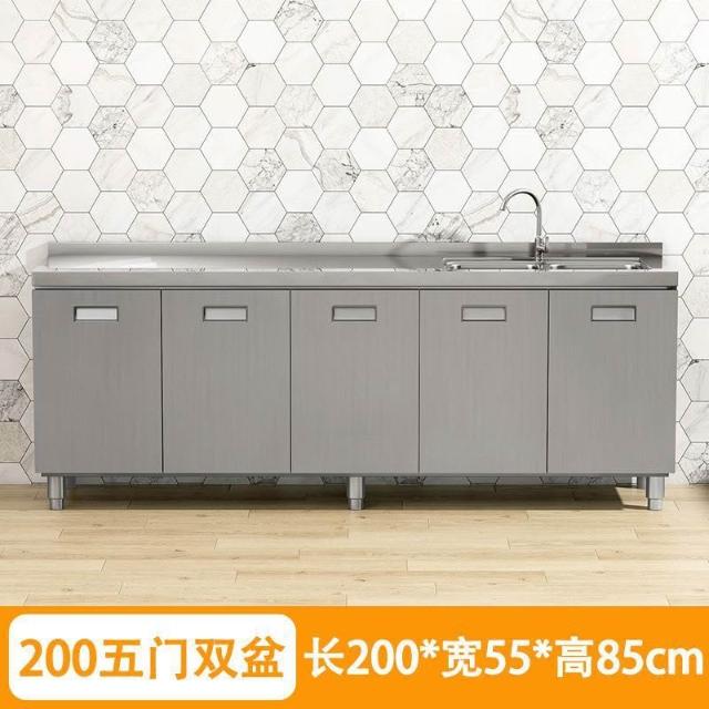 304整體不銹鋼廚房櫥櫃家庭簡易灶台一體家用經濟型農村儲物碗櫃
