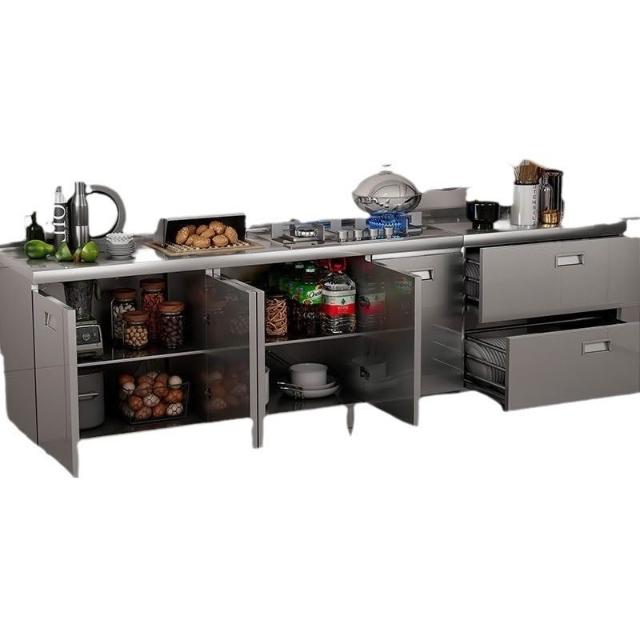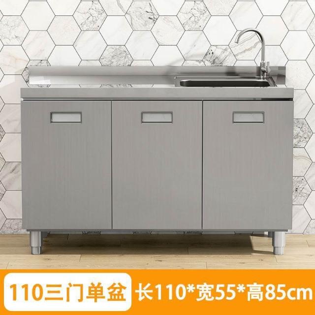 304整體不銹鋼廚房櫥櫃家庭簡易灶台一體家用經濟型農村儲物碗櫃