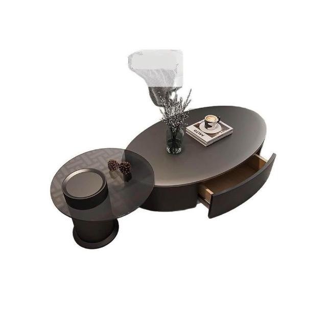 橢圓茶几 輕奢現代簡約岩板 腰型茶几 客廳家用大戶型意式極簡高級感