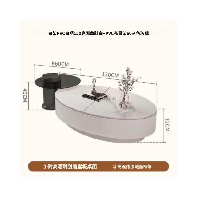 橢圓茶几 輕奢現代簡約岩板 腰型茶几 客廳家用大戶型意式極簡高級感