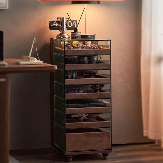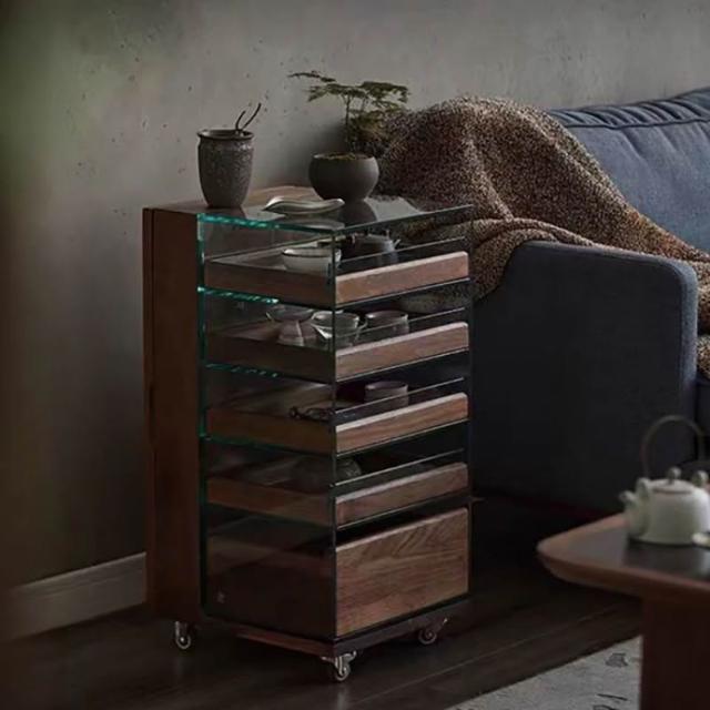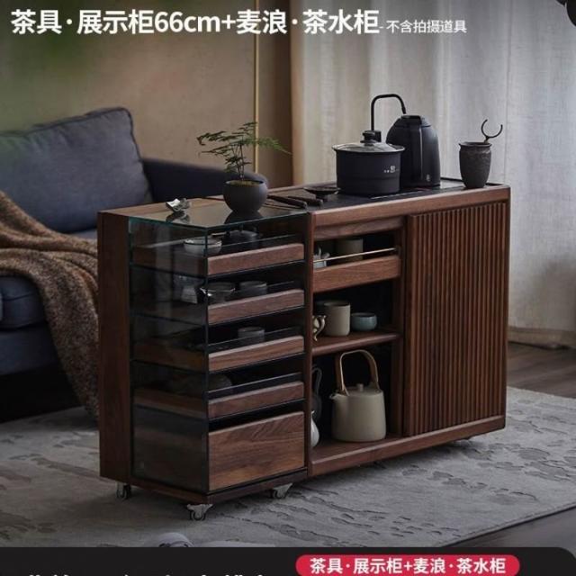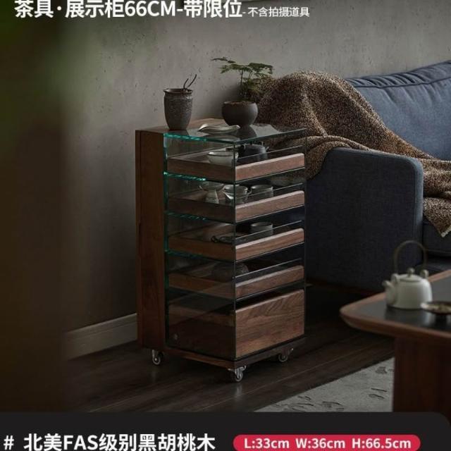 黑胡桃木茶具收納玻璃展示櫃實木茶水櫃移動茶桌邊櫃茶臺置物架