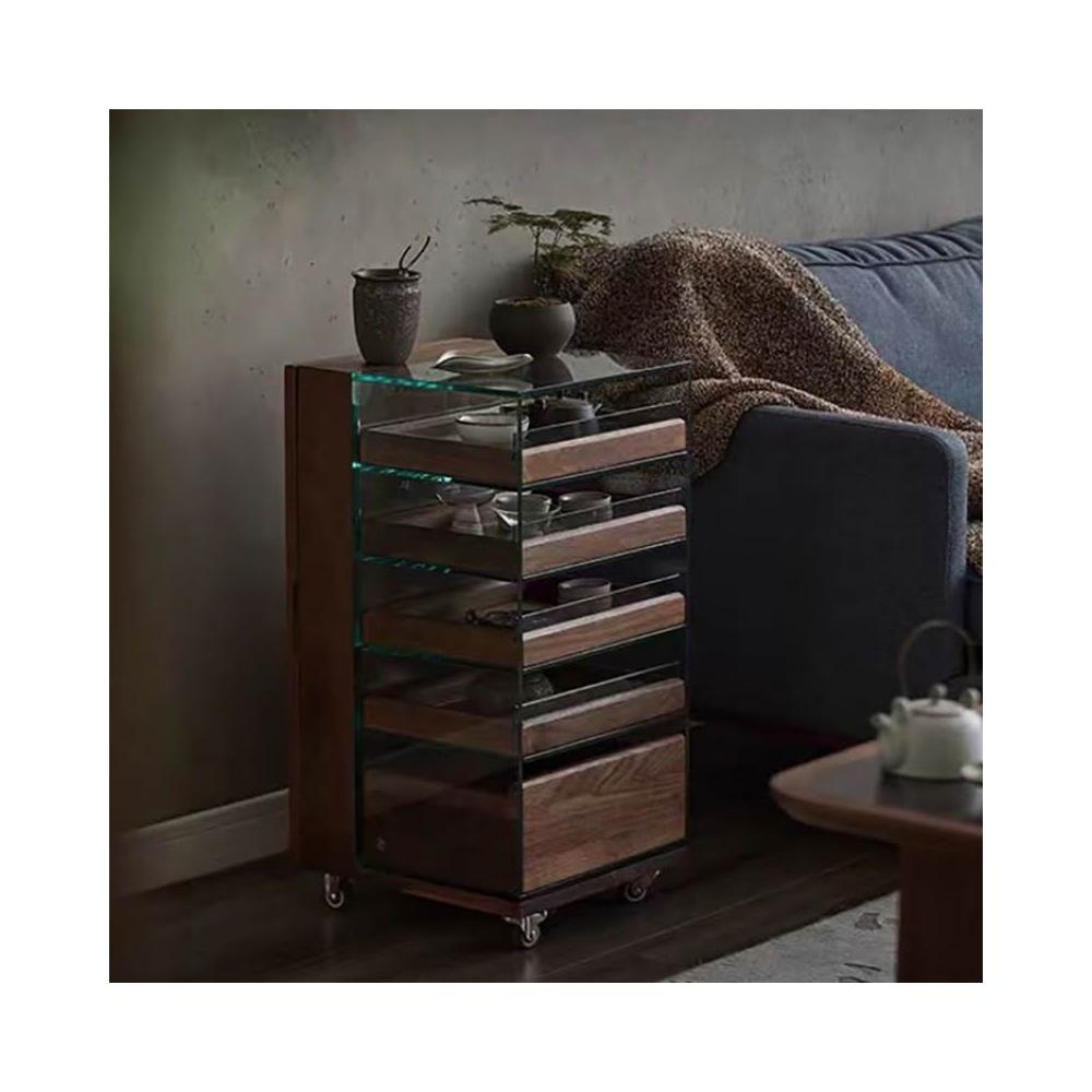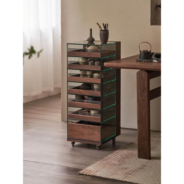 黑胡桃木茶具收納玻璃展示櫃實木茶水櫃移動茶桌邊櫃茶臺置物架