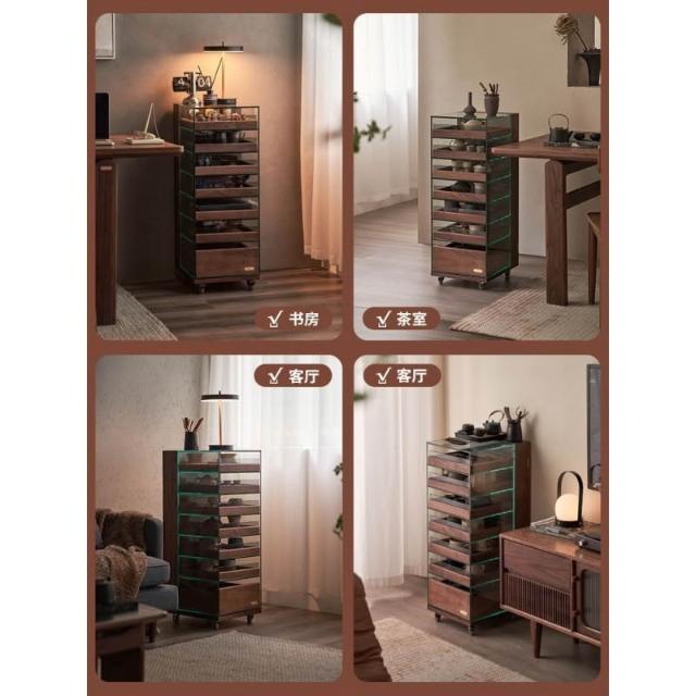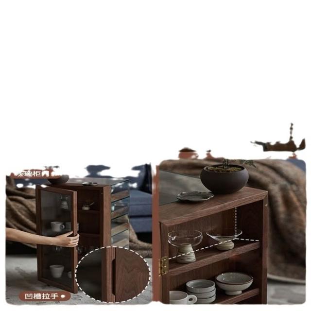 黑胡桃木茶具收納玻璃展示櫃實木茶水櫃移動茶桌邊櫃茶臺置物架