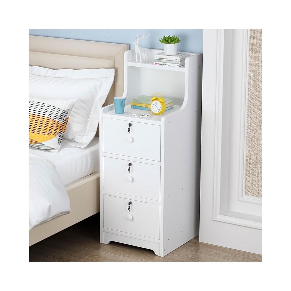 床頭櫃超窄20/25/30cm收納櫃簡約現代小型迷你臥室帶鎖三抽床邊櫃