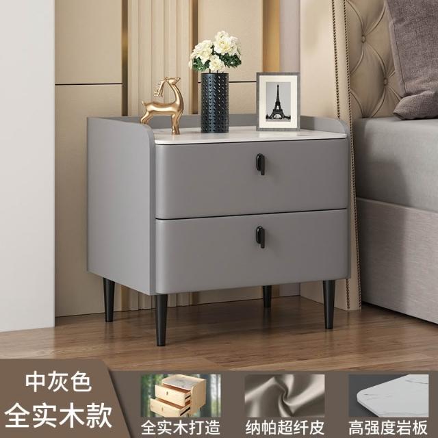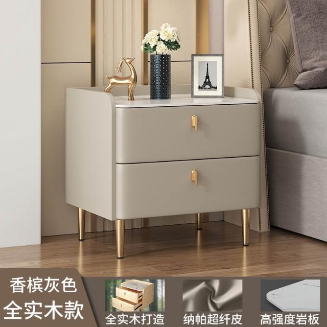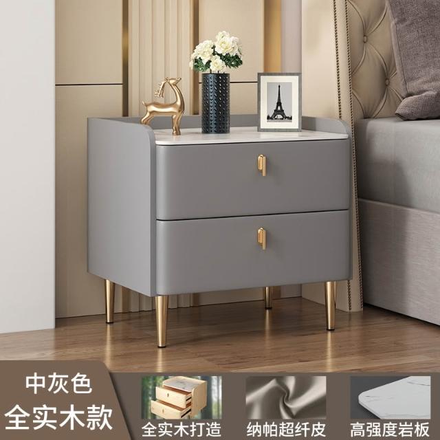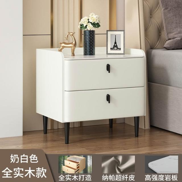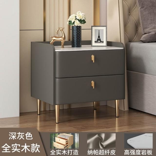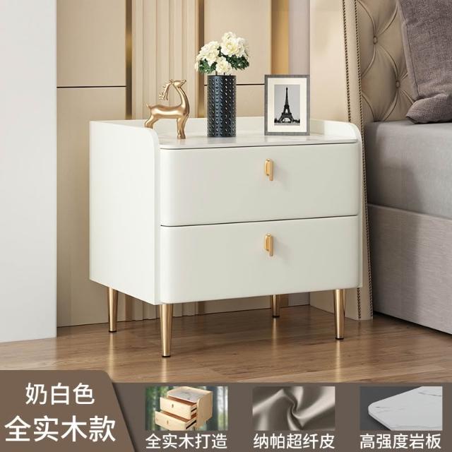 全實木床頭櫃簡約現代小櫃子輕奢床邊櫃臥室岩板小型床頭收納櫃