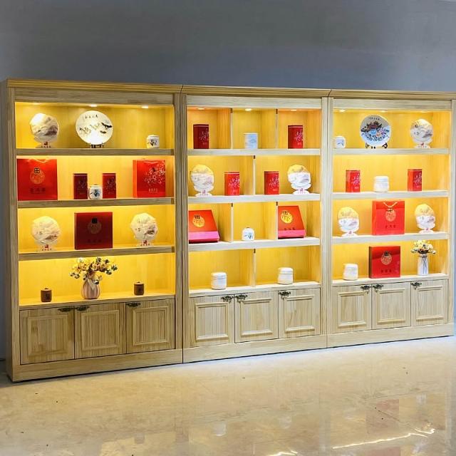 白酒櫃商行展示櫃特產乾貨陳列櫃陶瓷茶葉產品櫃復古實木帶燈貨架
