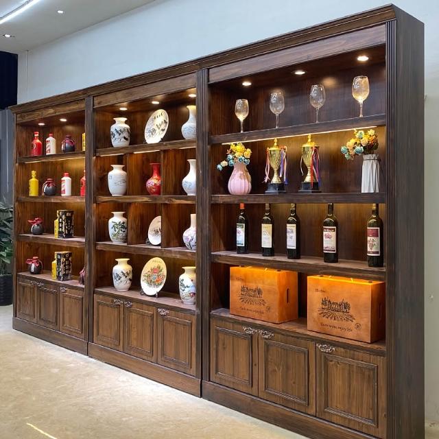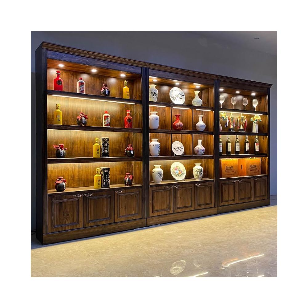 白酒櫃商行展示櫃特產乾貨陳列櫃陶瓷茶葉產品櫃復古實木帶燈貨架