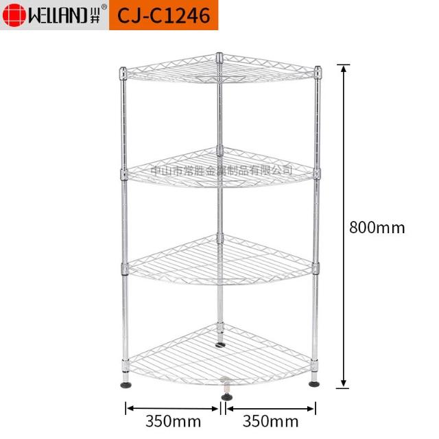 廠家直銷川井落地轉角多層浴室收納架鍍鉻加厚可調節金屬架子