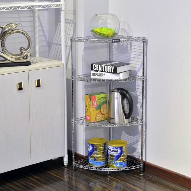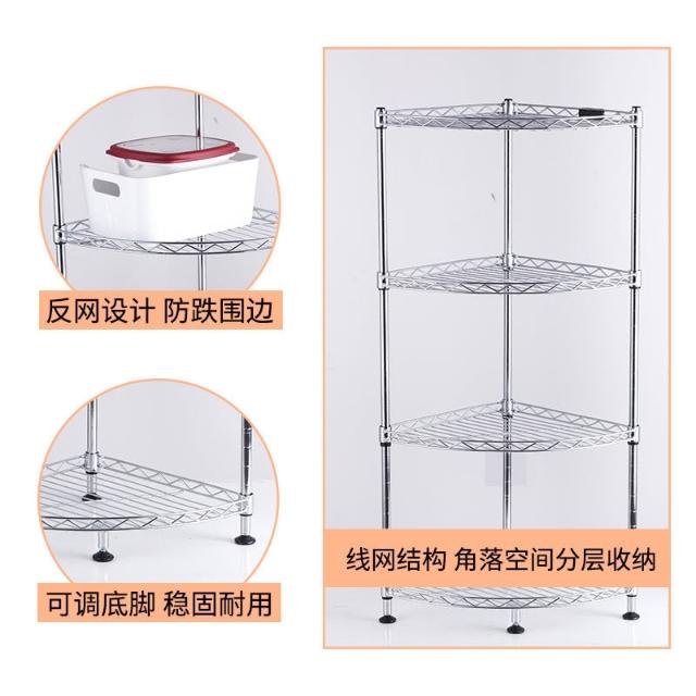 廠家直銷川井落地轉角多層浴室收納架鍍鉻加厚可調節金屬架子