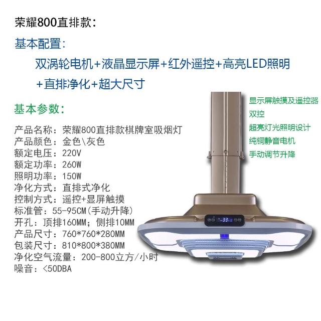 棋牌室專用吸煙燈麻將室空氣淨化器直排式升降吊燈排煙神器麻將燈