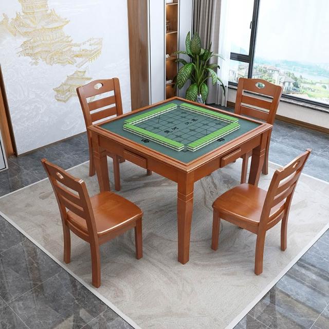 實木麻將桌餐桌兩用家用手動撲克棋牌桌象棋桌簡易手搓方桌椅組合