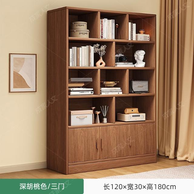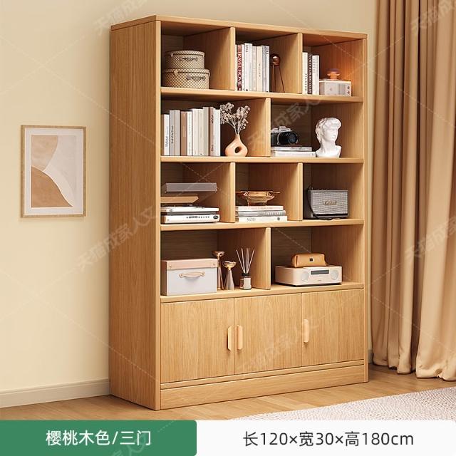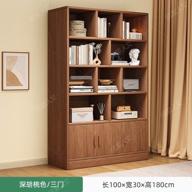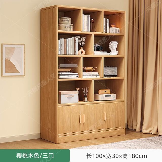 全實木書架落地置物架家用兒童展示書櫃客廳多層收納櫃靠牆儲物櫃