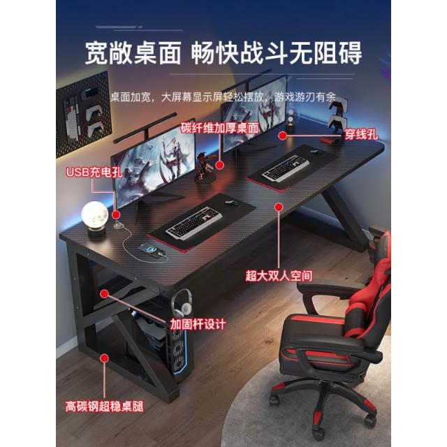 新款家用电脑桌台式双人书桌卧室简易办公桌网吧游戏桌椅套装碳纤