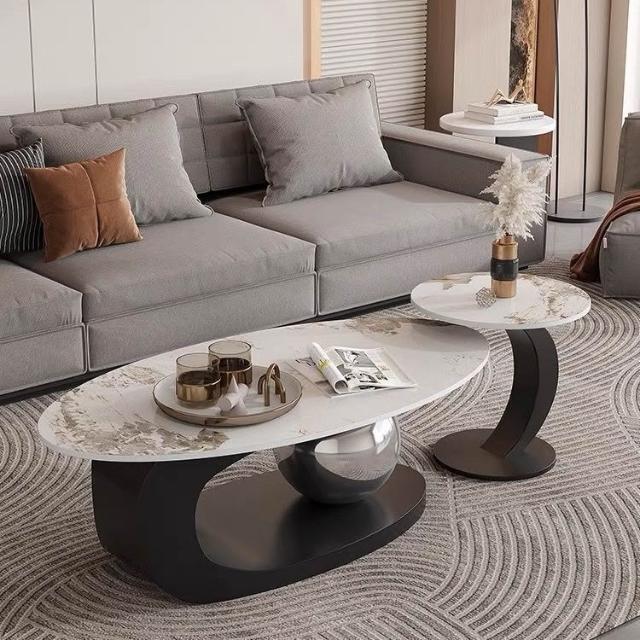 橢圓形岩板茶几輕奢現代客廳家用桌子小戶型新款簡約創意網紅茶幾