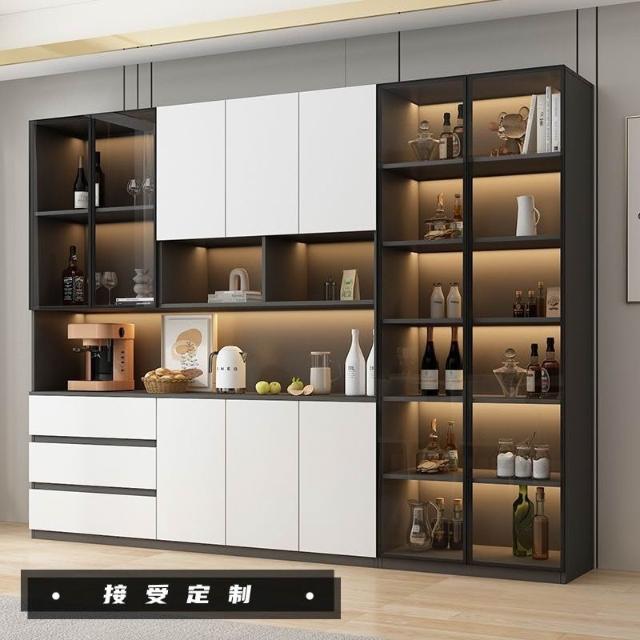 餐邊櫃高櫃一體靠牆現代簡約輕奢客廳收納櫃意式玻璃門酒櫃餐廳櫃