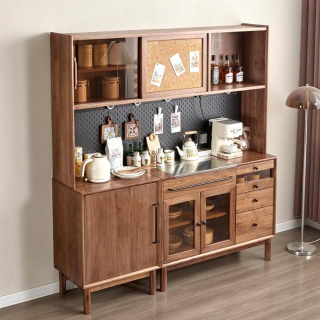 北美黑胡桃木實木餐邊櫃北歐櫻桃木餐廳靠牆高櫃客廳多功能茶水櫃