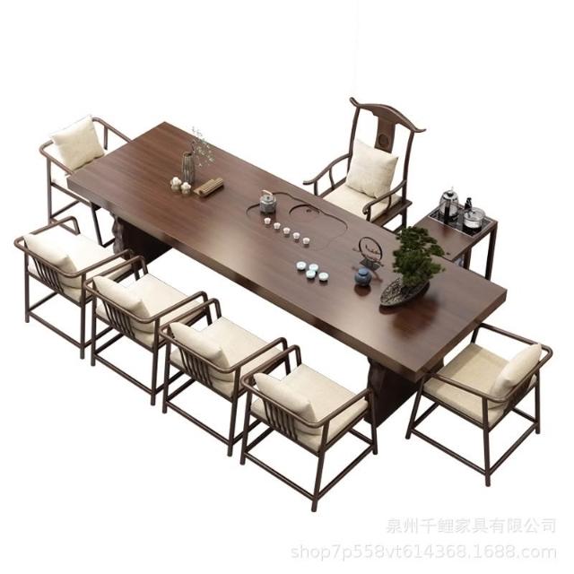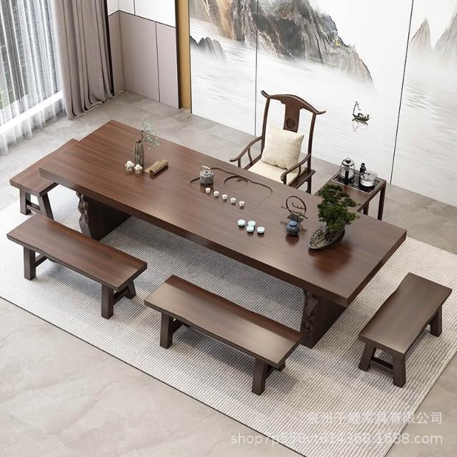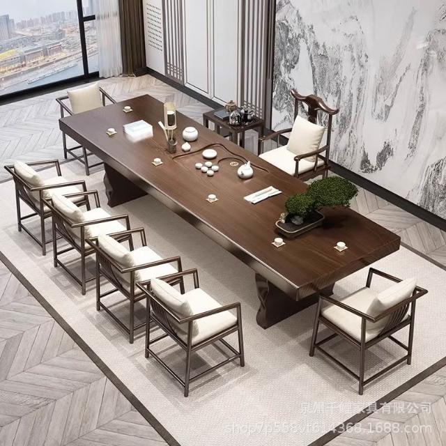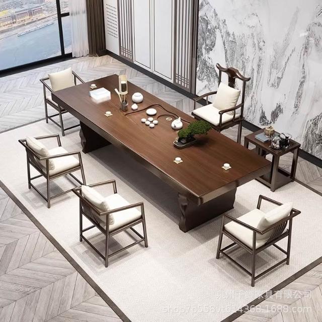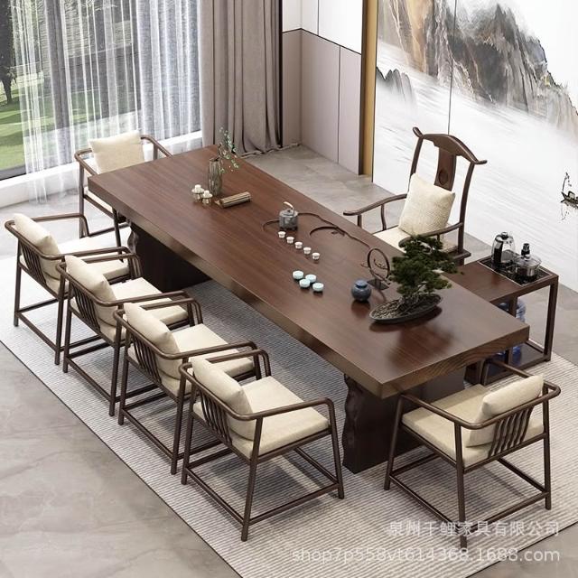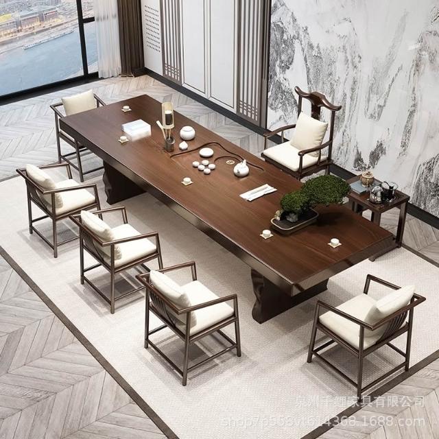新中式實木茶桌全套簡約客廳大板茶臺家用辦公室禪意泡茶桌椅組合
