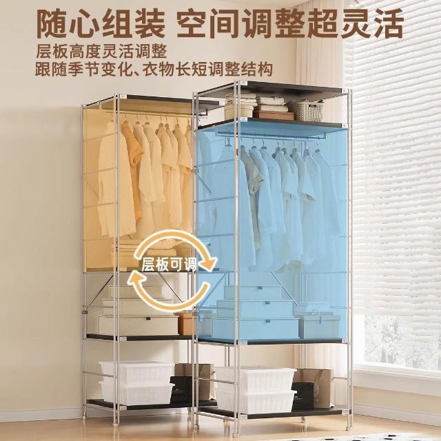衣櫃家用臥室金屬衣櫃簡易組裝新款開放式日式衣帽架出租房小衣櫃