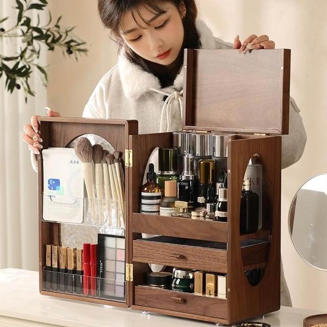 化妆品收纳柜梳妆台桌面抽屉置物架化妆刷口红香水分隔整理盒带盖