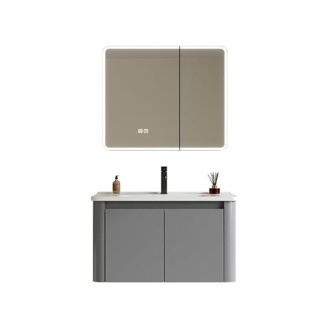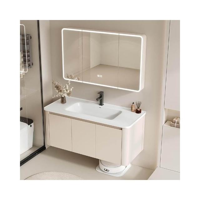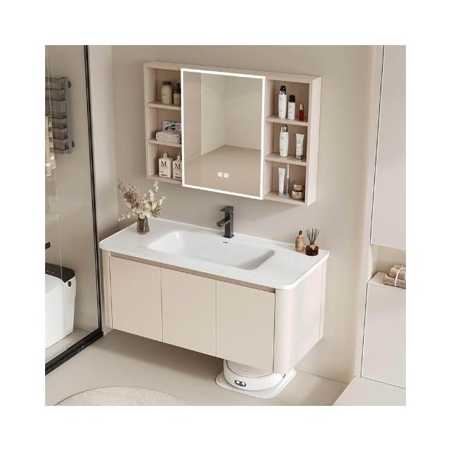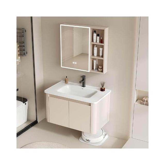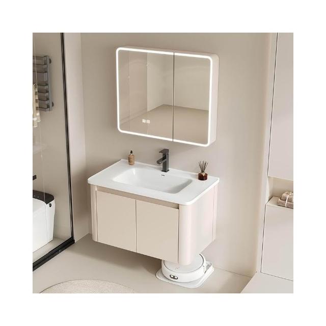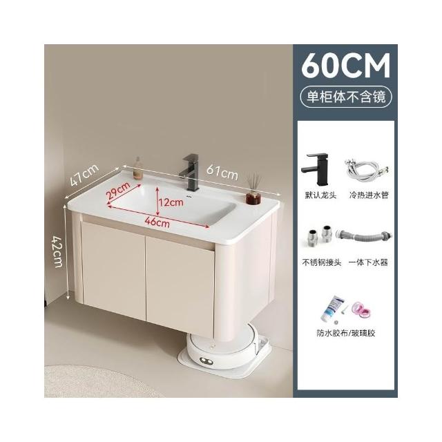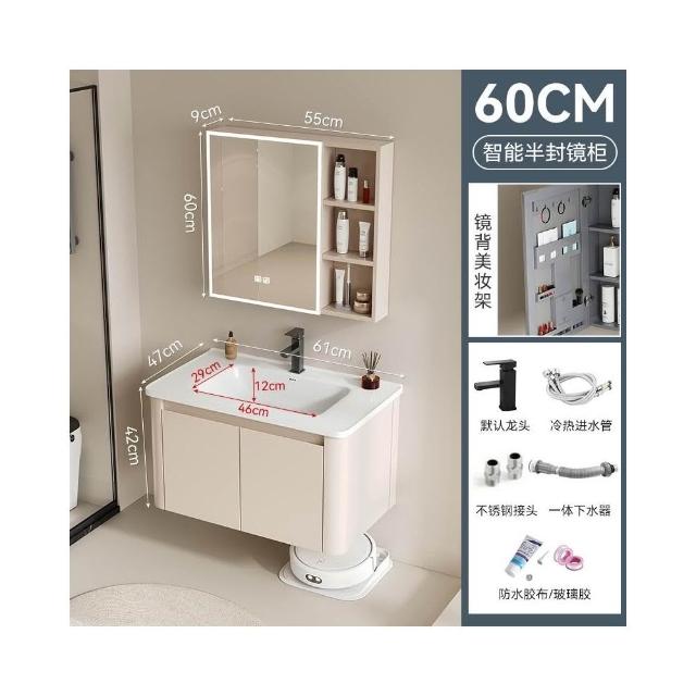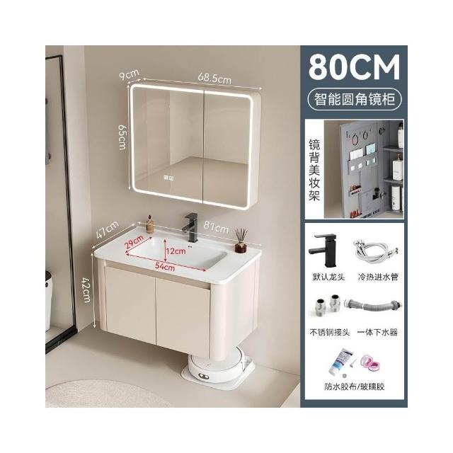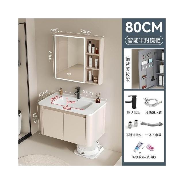 (包安裝)奶油风太空铝圆角浴室柜陶瓷一体洗手盆柜组合洗漱台蜂窝铝台面盆