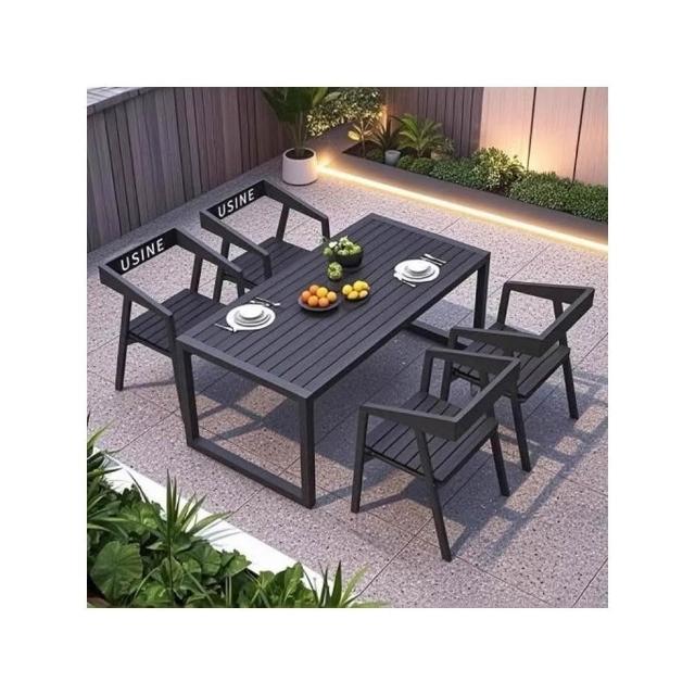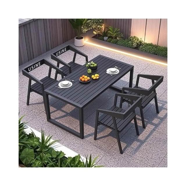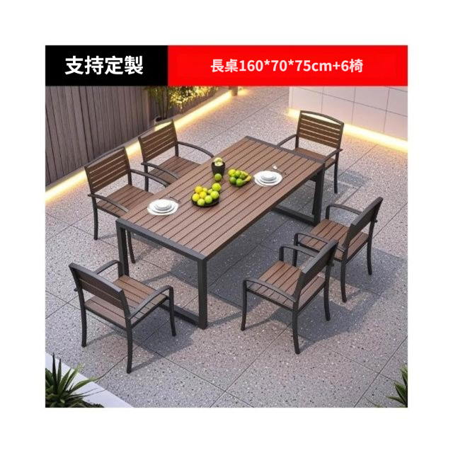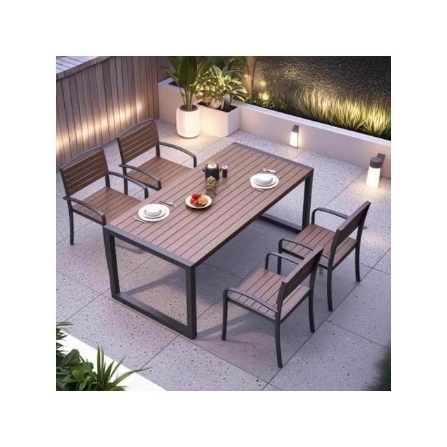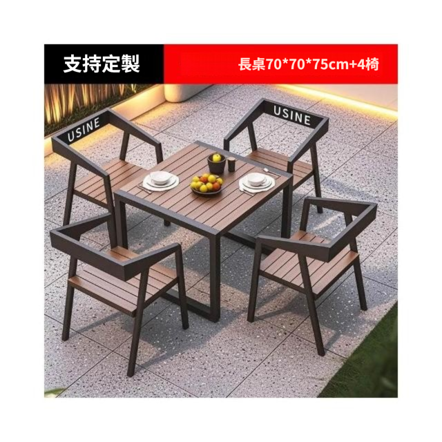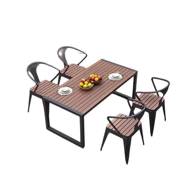 戶外庭院桌 椅室外防水防曬餐桌 公園休閒陽臺 鐵藝塑木燒烤桌椅組合