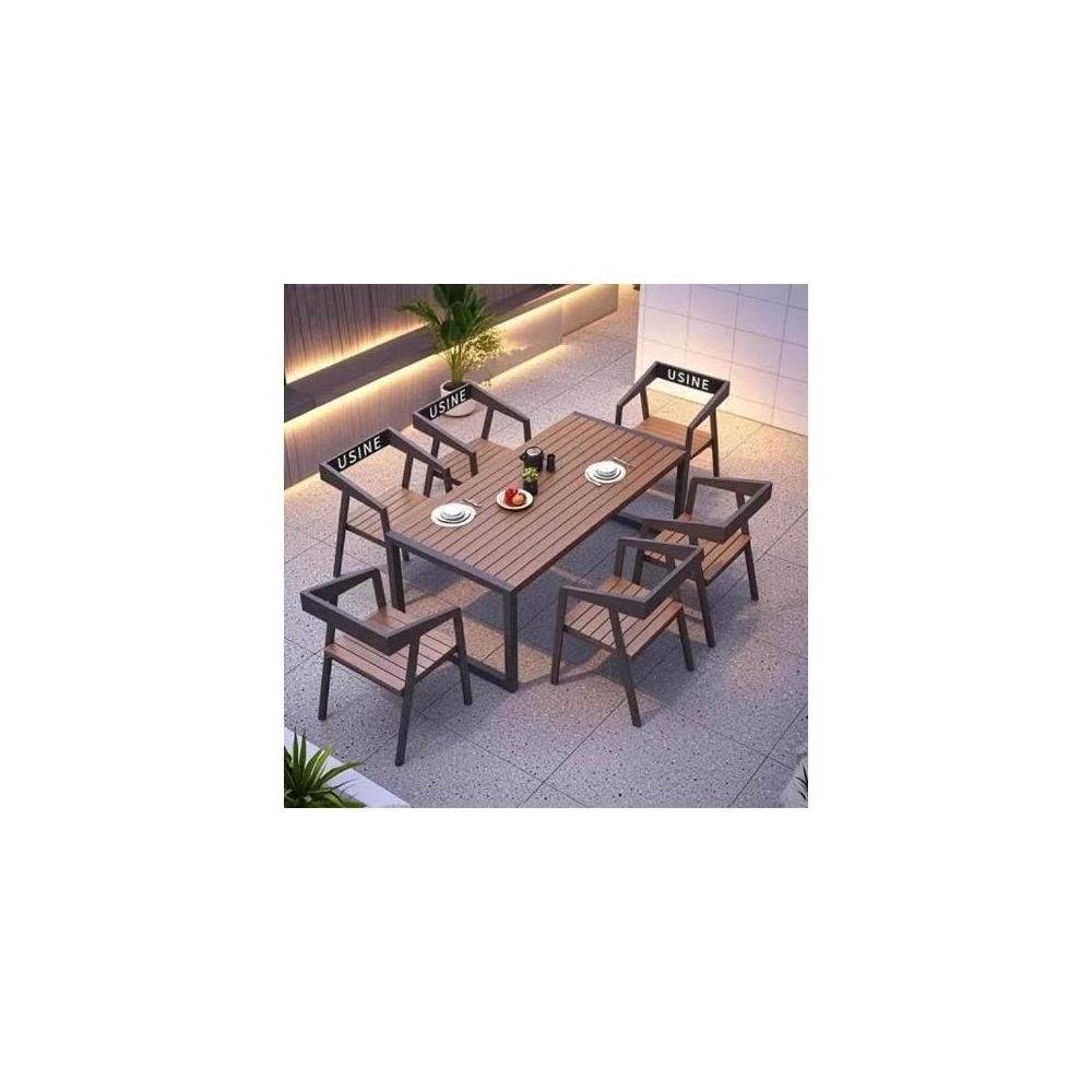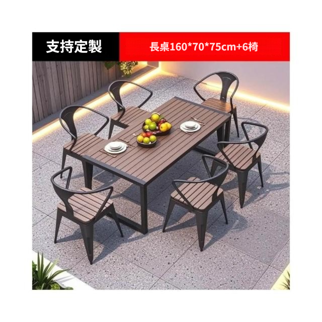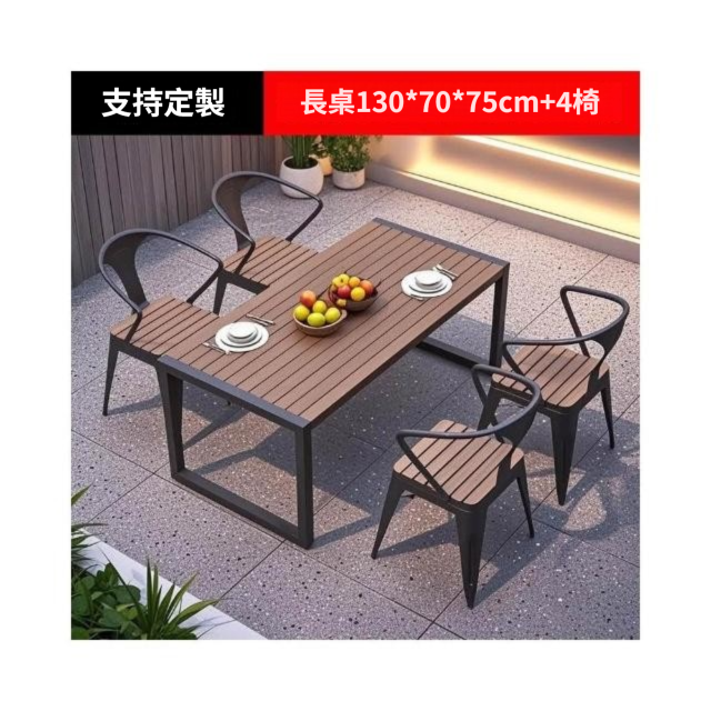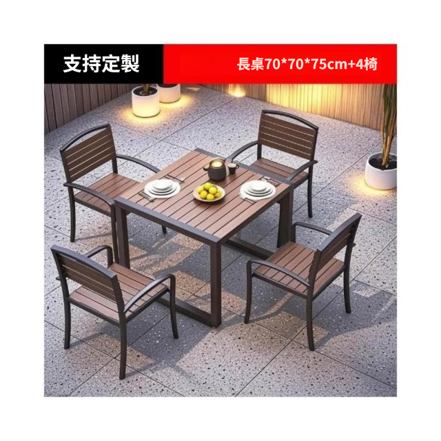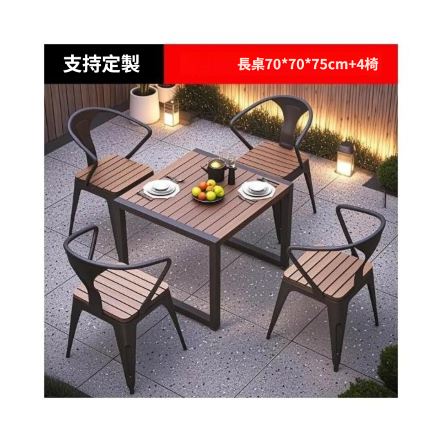 戶外庭院桌 椅室外防水防曬餐桌 公園休閒陽臺 鐵藝塑木燒烤桌椅組合