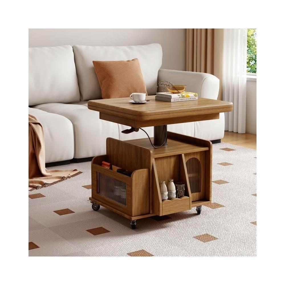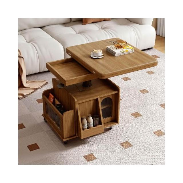 (包上樓)實木升降茶几移動推車茶桌折疊餐桌兩用茶臺多功能客廳沙發小邊幾