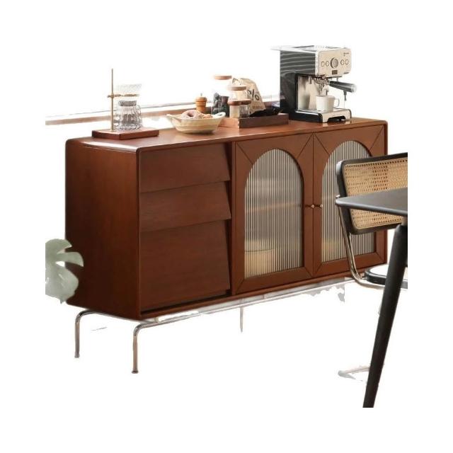 簡約復古實木餐邊櫃法式中古風餐廳櫥櫃復古靠牆實木收納儲物櫃子