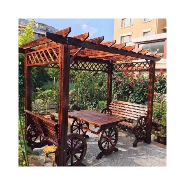 客製 葡萄架防腐实木户外庭院公园园林景观碳化实木栈道架子木廊护栏
