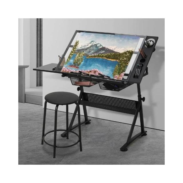 鋼化玻璃帶副板繪圖桌可升降畫畫美術設計師工作臺桌子畫架繪畫桌
