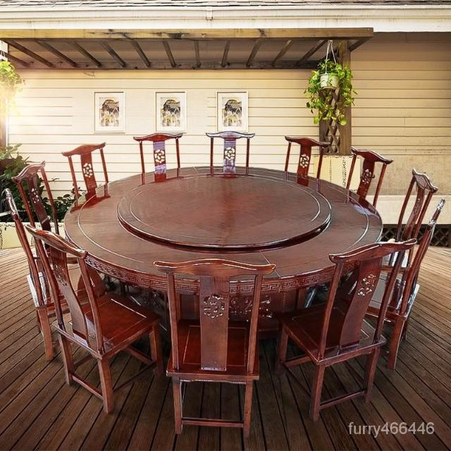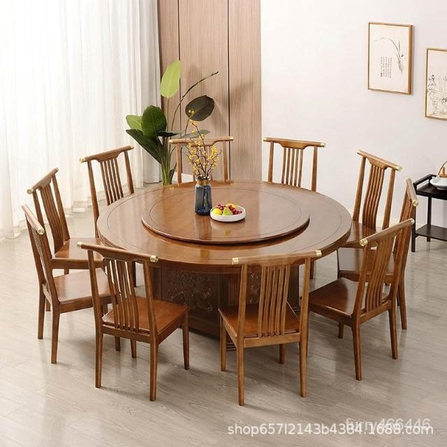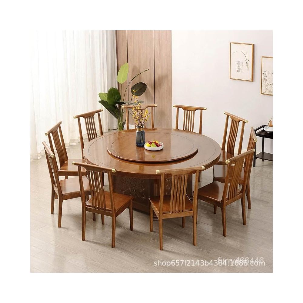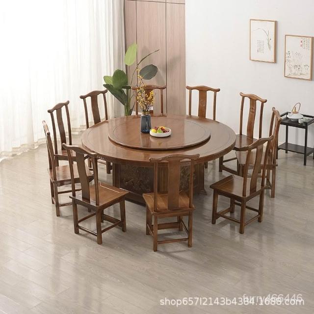 中式實木酒店電動大圓桌 飯店餐廳會所包廂 手動10人15人餐桌定製 實木餐桌