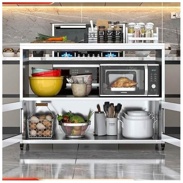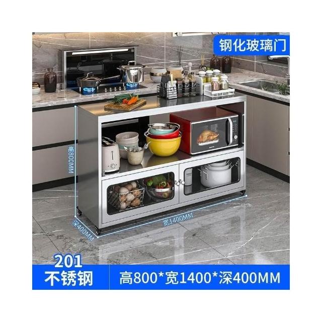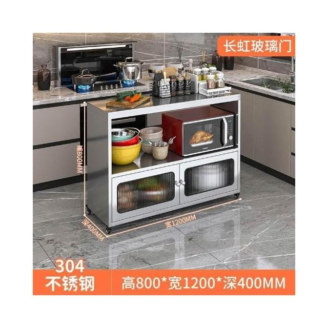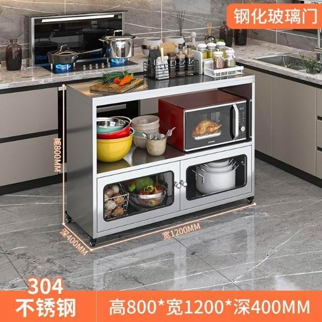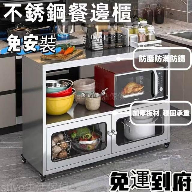 免安裝 304不銹鋼置物架 餐邊櫃 碗櫃 切菜臺 廚房儲物櫃 微波爐架烤箱架 不鏽鋼餐邊櫃 電氣櫃 厨房收納架