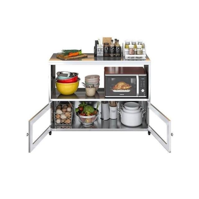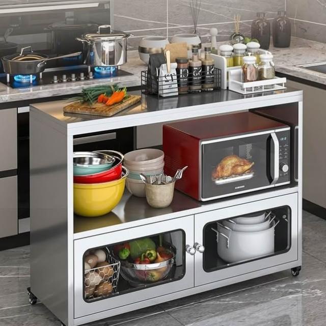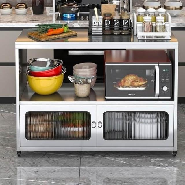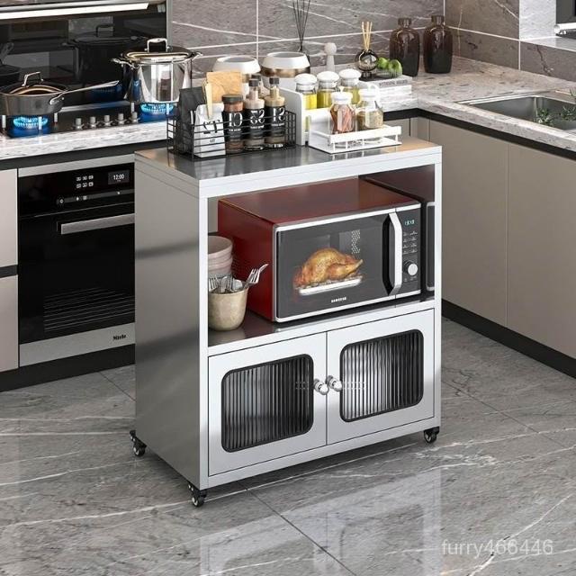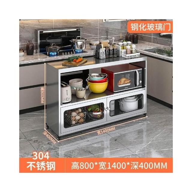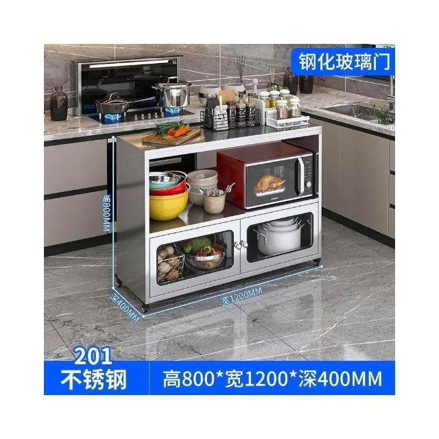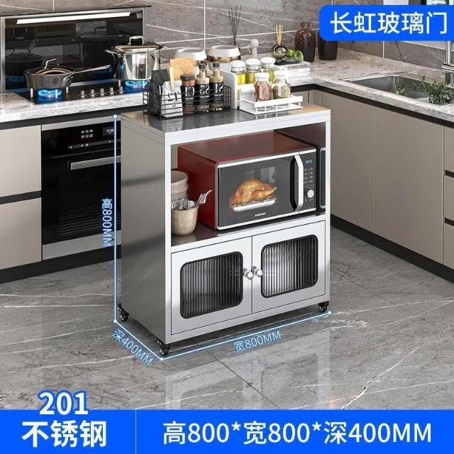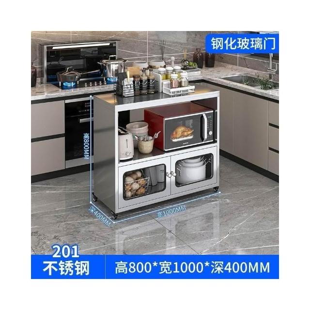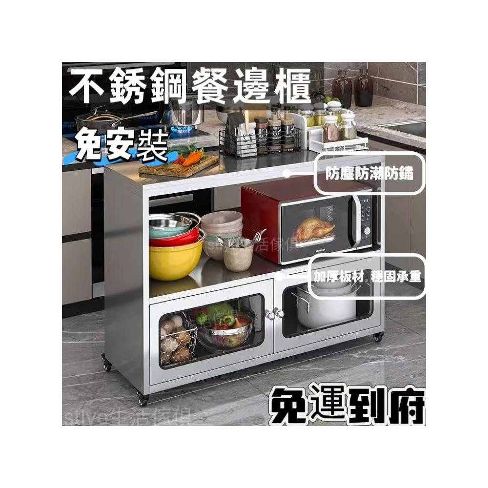 免安裝 304不銹鋼置物架 餐邊櫃 碗櫃 切菜臺 廚房儲物櫃 微波爐架烤箱架 不鏽鋼餐邊櫃 電氣櫃 厨房收納架