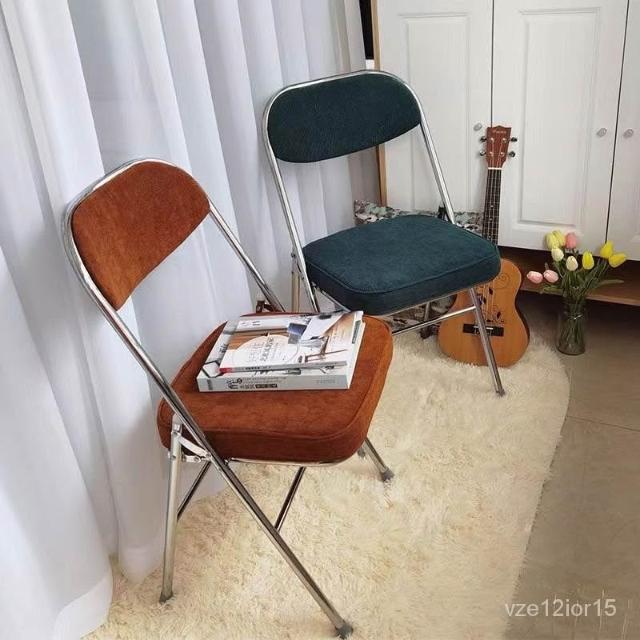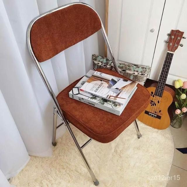 複古折疊椅 燈芯絨老式靠背餐椅 電腦椅 人體工學椅 書桌椅 椅子 學習椅
