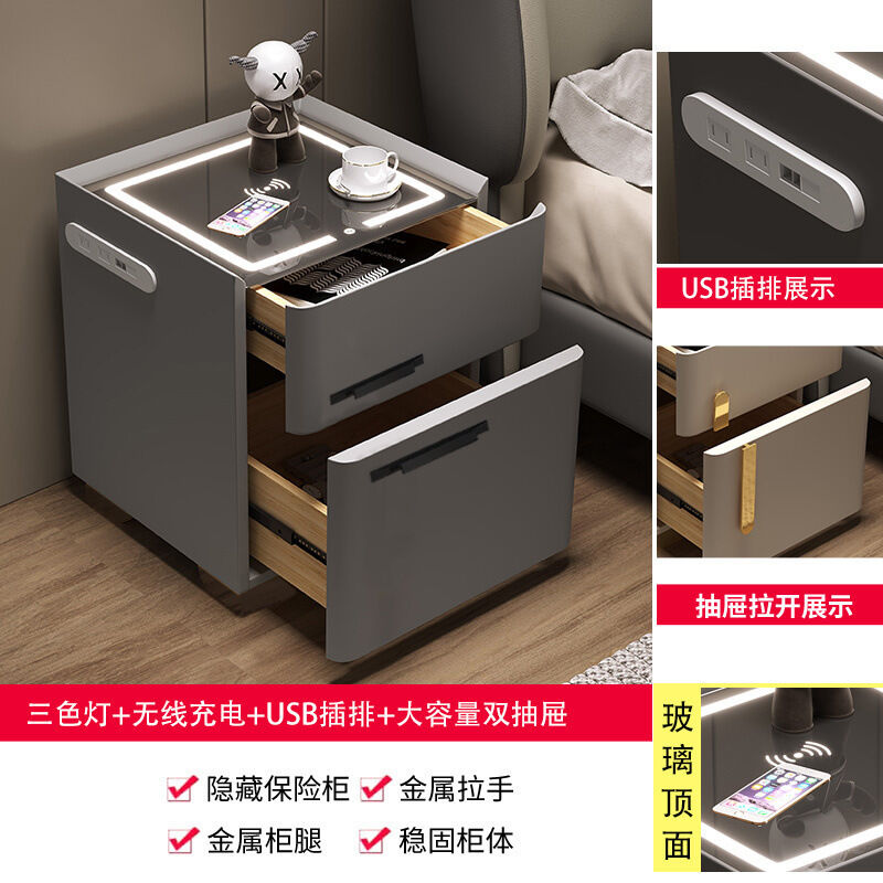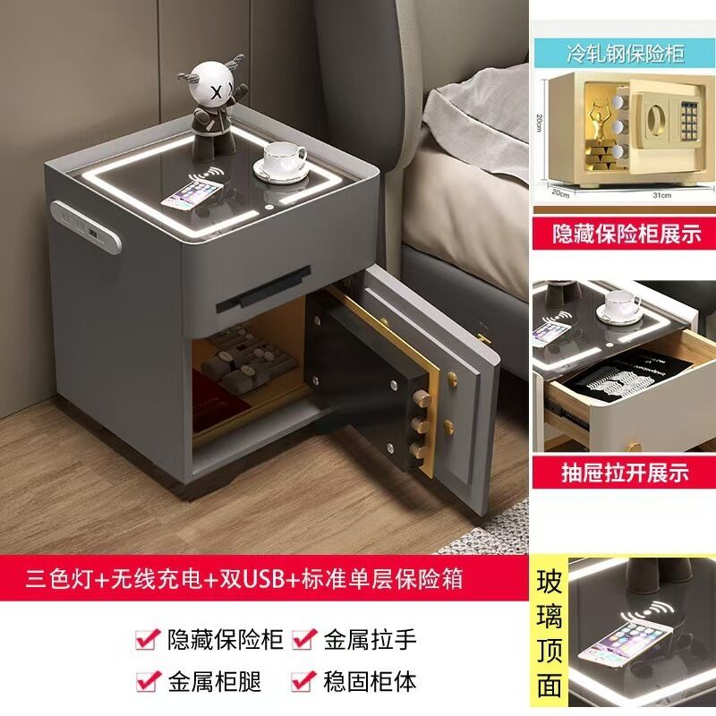 廠商免運 家用智能床頭櫃保險櫃一體簡約現代多功能臥室無線充電保險箱收納