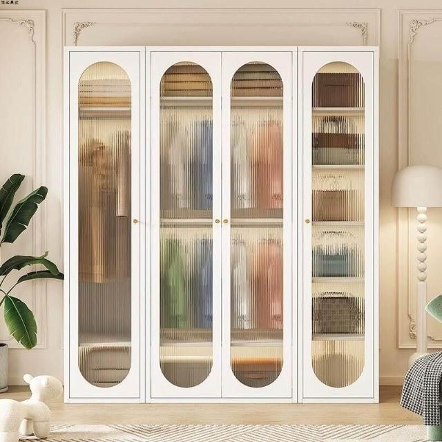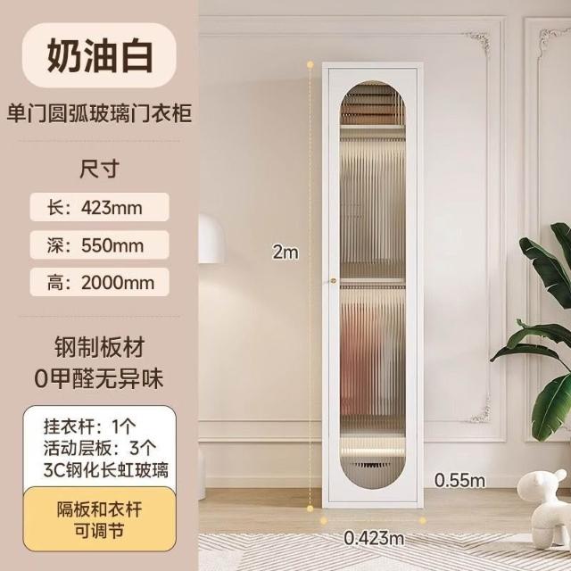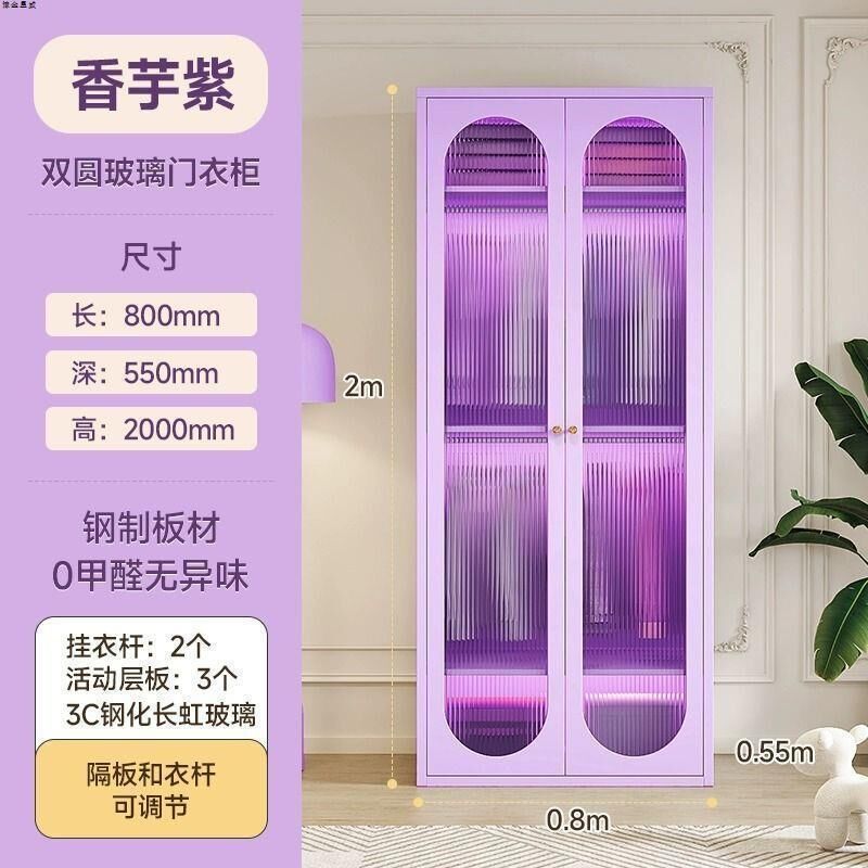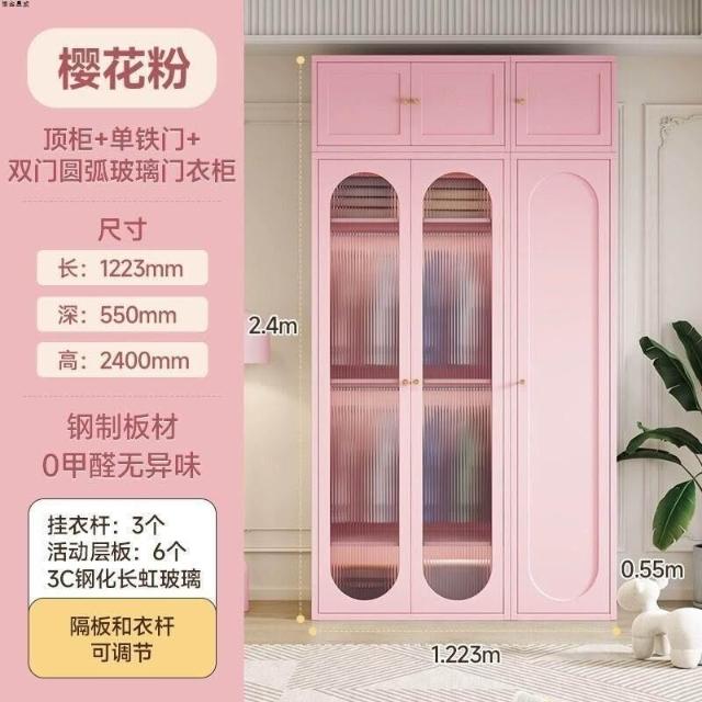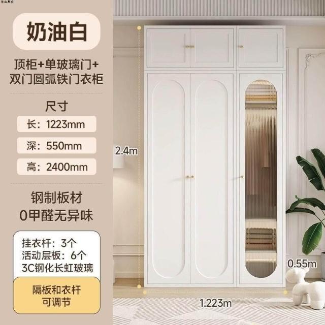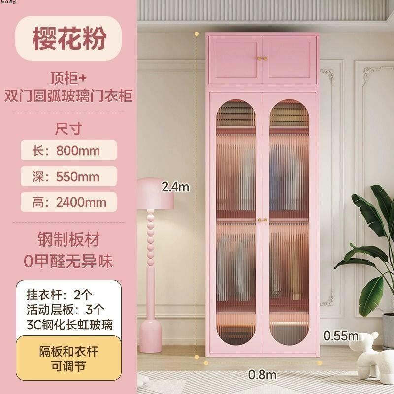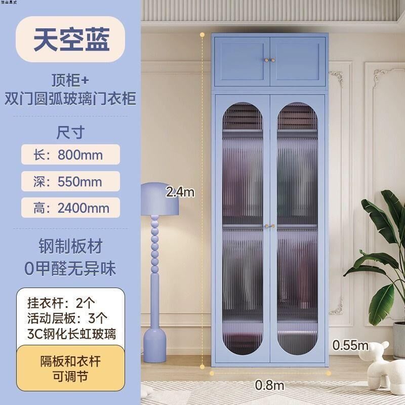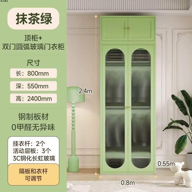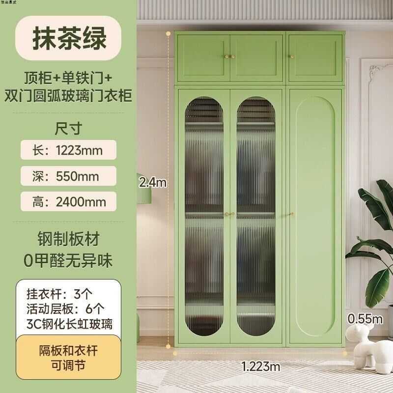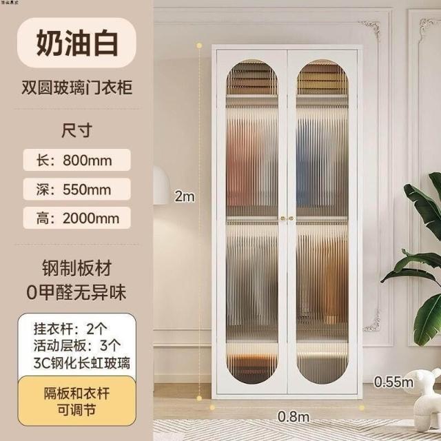法式奶油風鋼製衣櫃家用長虹玻璃門臥室大容量儲物收納可組合衣櫃