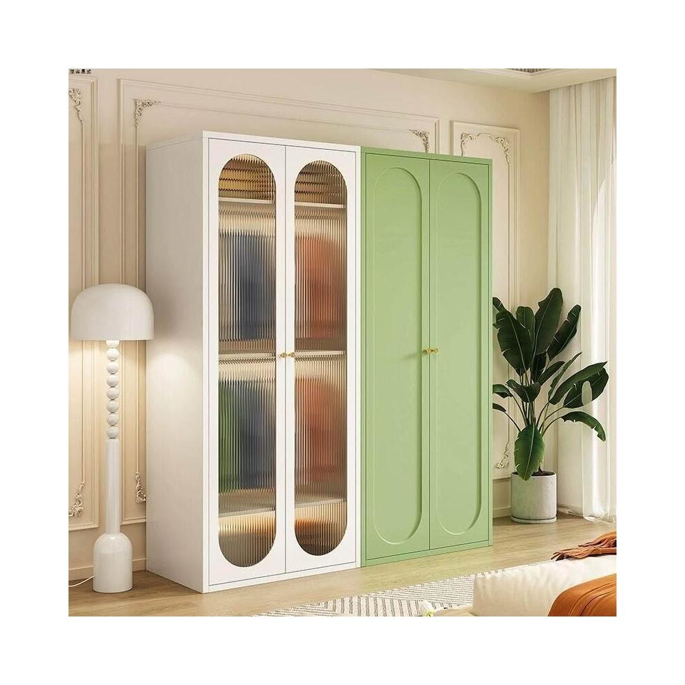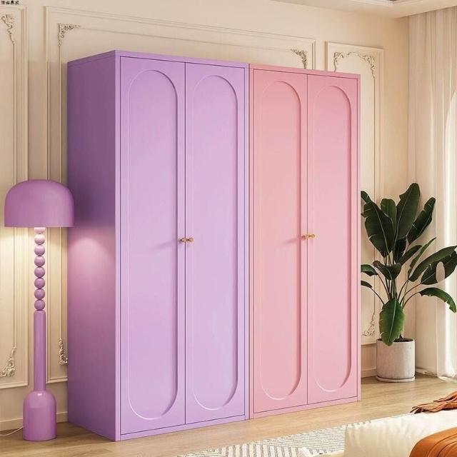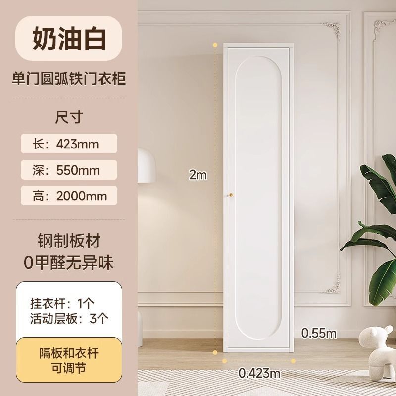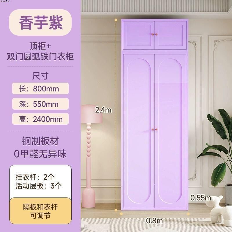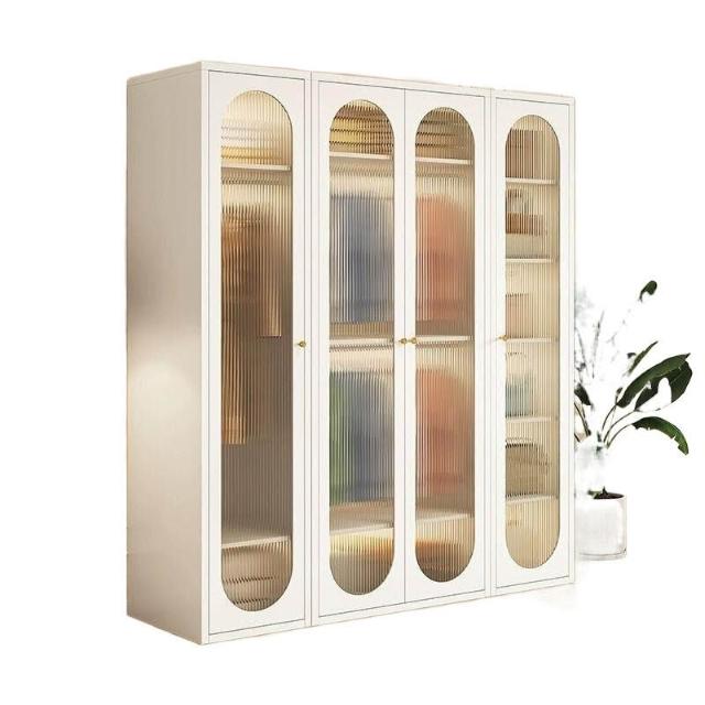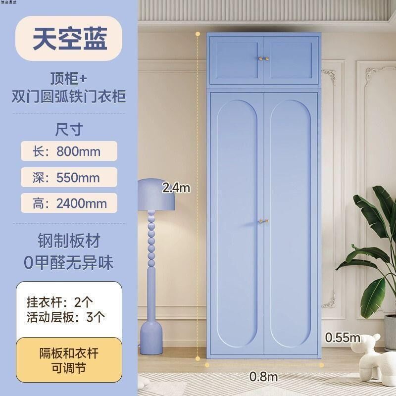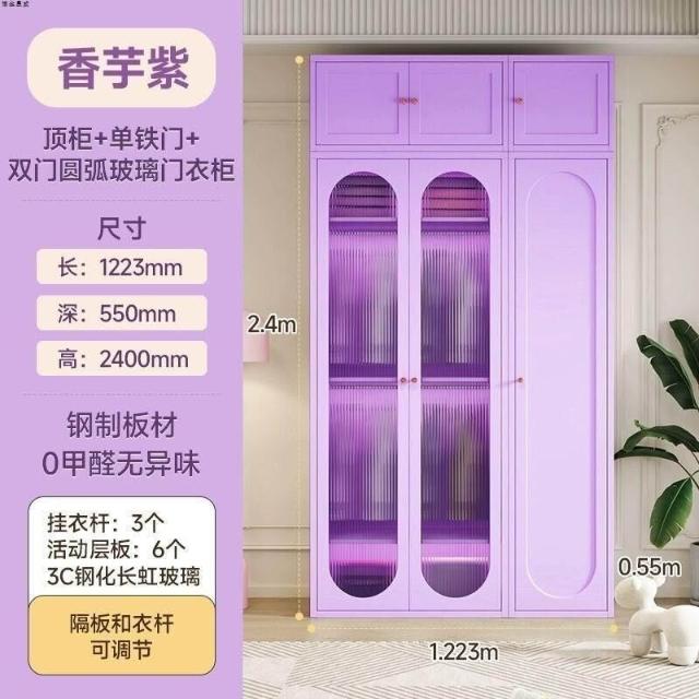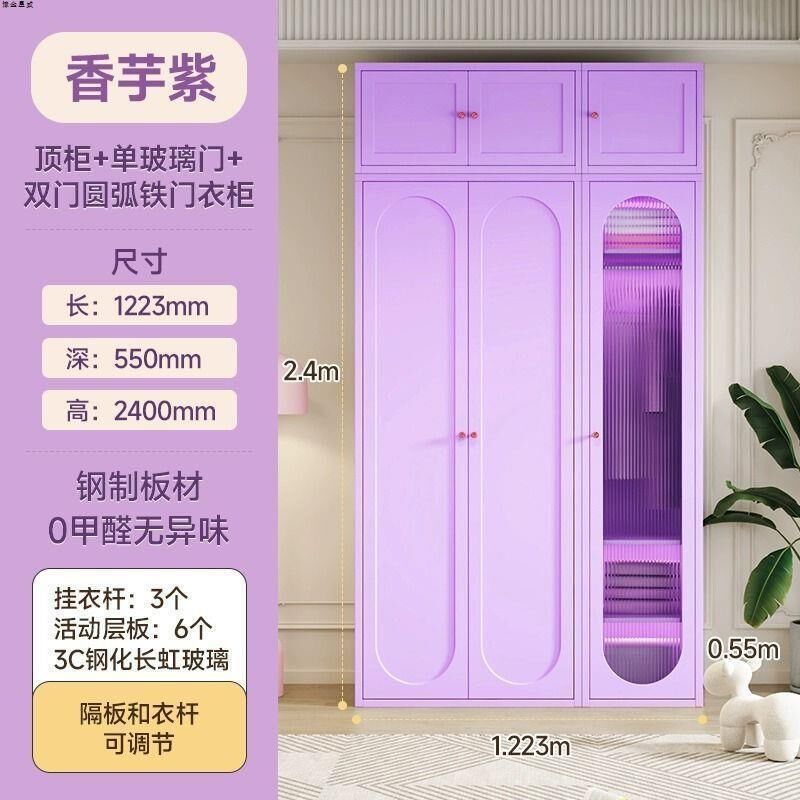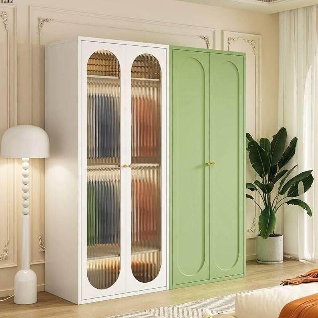 法式奶油風鋼製衣櫃家用長虹玻璃門臥室大容量儲物收納可組合衣櫃