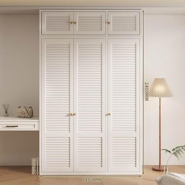 新款鋼製百葉門衣櫃金屬儲物櫃歐式奶油風臥室成人兒童環保無甲醛
