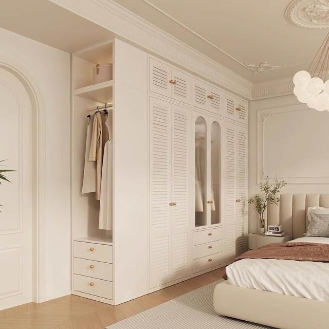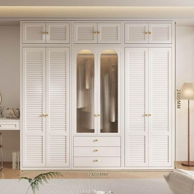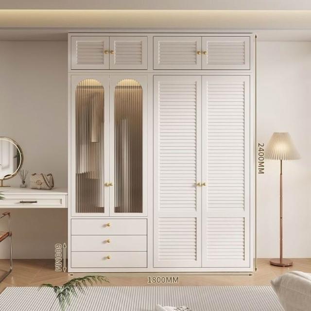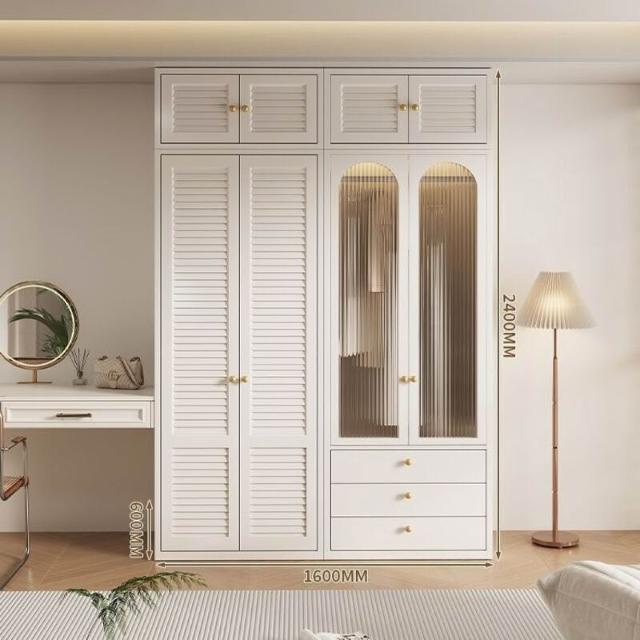 新款鋼製百葉門衣櫃金屬儲物櫃歐式奶油風臥室成人兒童環保無甲醛