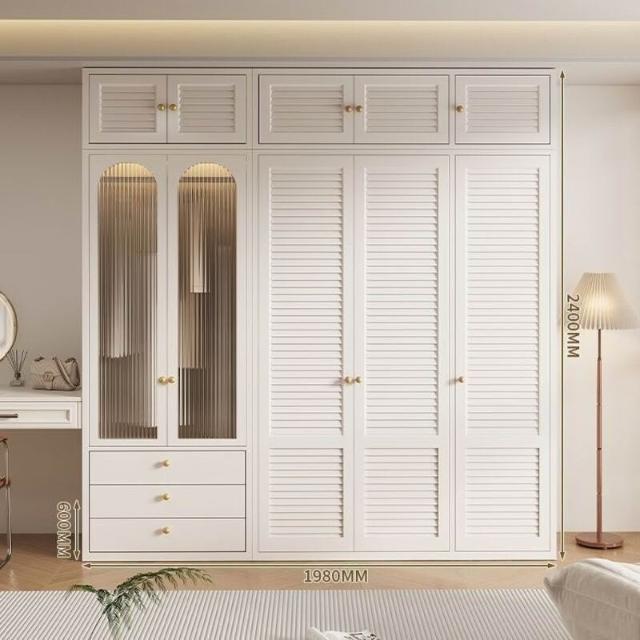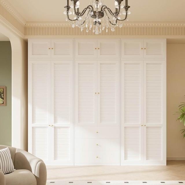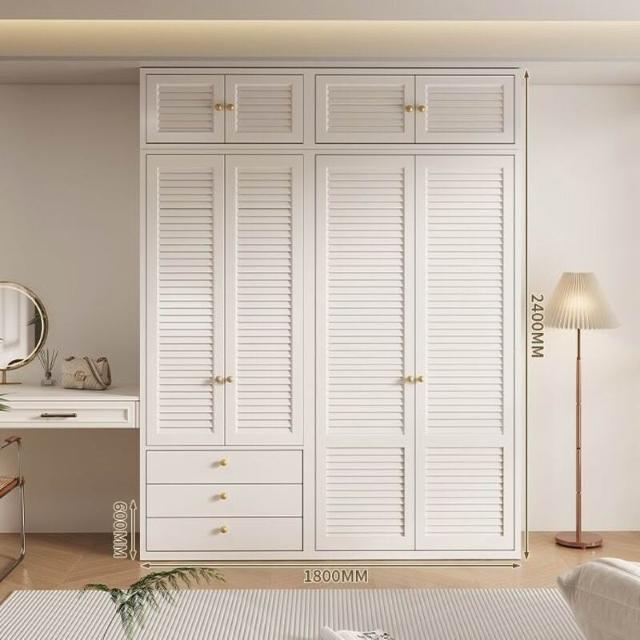 新款鋼製百葉門衣櫃金屬儲物櫃歐式奶油風臥室成人兒童環保無甲醛