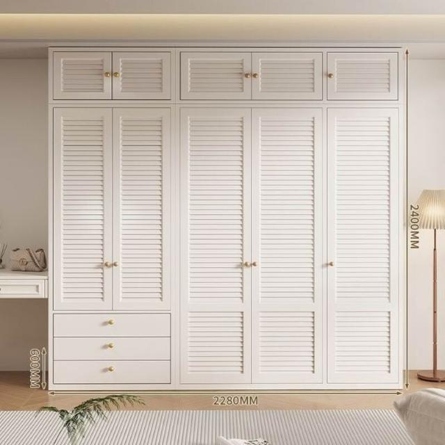 新款鋼製百葉門衣櫃金屬儲物櫃歐式奶油風臥室成人兒童環保無甲醛
